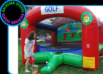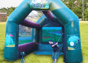 How far can you hit the ball? Find out by swinging our club of your choice in our inflatable golf driving cage. Our golf driving cage includes a radar gun/monitor that will monitor the speed and the distance of every drive that you make. We also will supply wood drivers and assortment of clubs. We will have available right-hand and left-hand clubs this is the time to show off your skills. We are the only event company on East Coast that supplies radar monitoring equipment showing the distance the golf ball as travel. Quite unique.